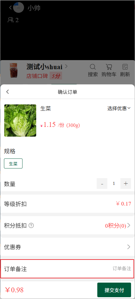 优化项1.新增直播间下单时,在确认订单 / 确认支付界面订单备注模块