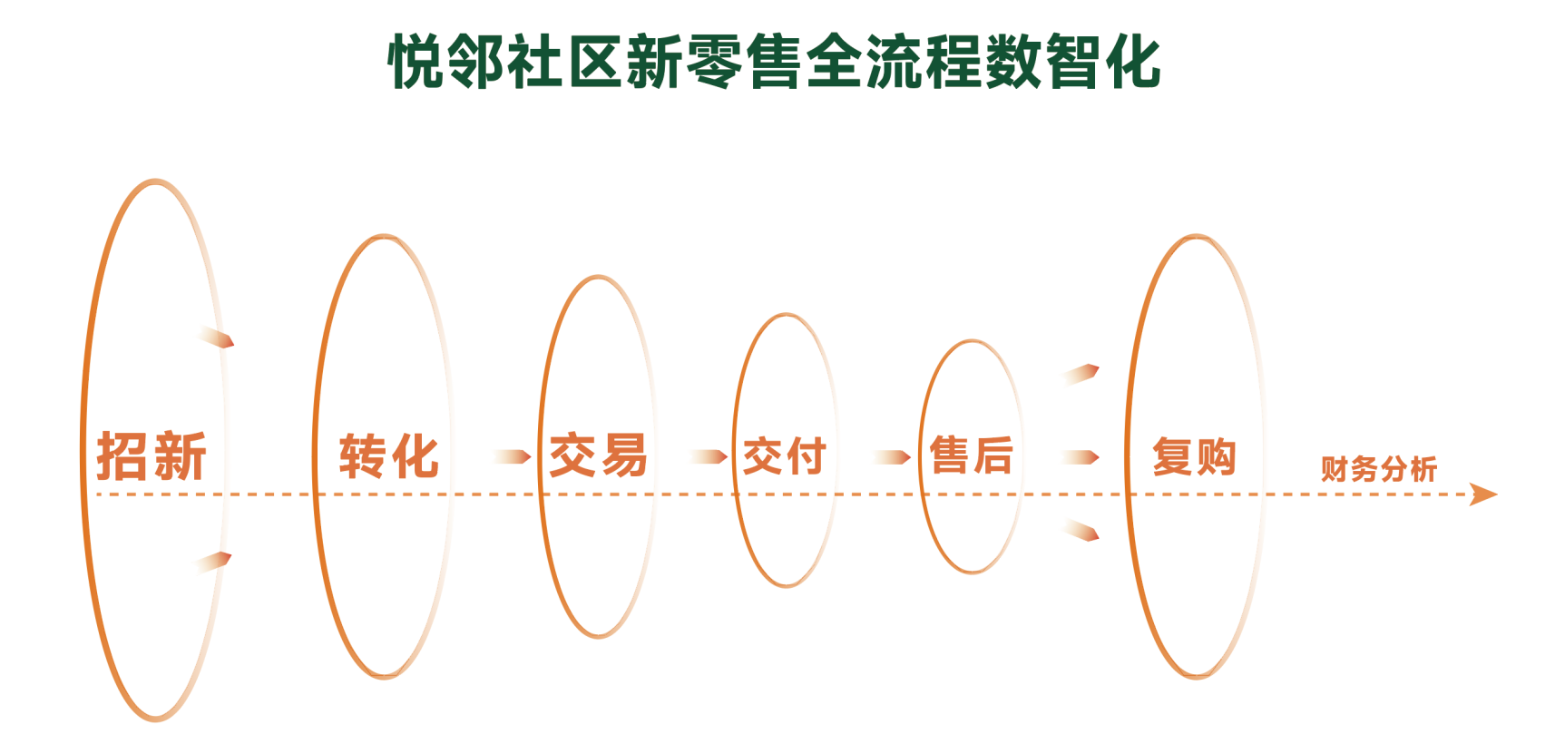 在悦邻的交易模式里面,每一个销售机会都有对应的工具支撑,每一个零售动作都被系统智能化记录分析,为后续的客情维护,交易转化提供强有力的工具支撑。