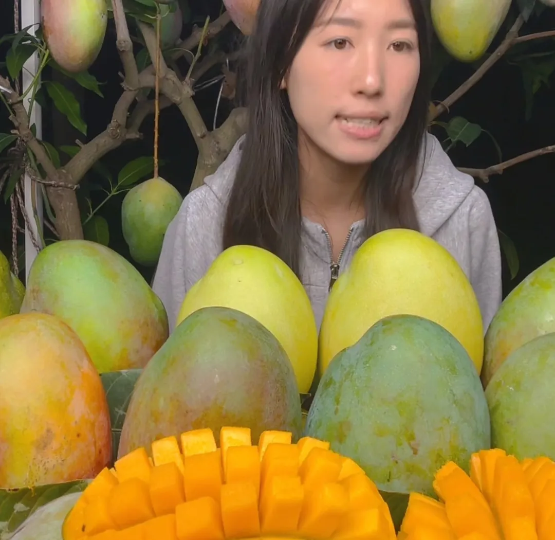 “有家人们说想看下这个芒果切开后的样子哈,好,主播马上切开给大家看看果肉颜色。”“有家人问这个面料摸起来手感怎么样?我跟您说啊,这块料子啊是来自咱们.......”