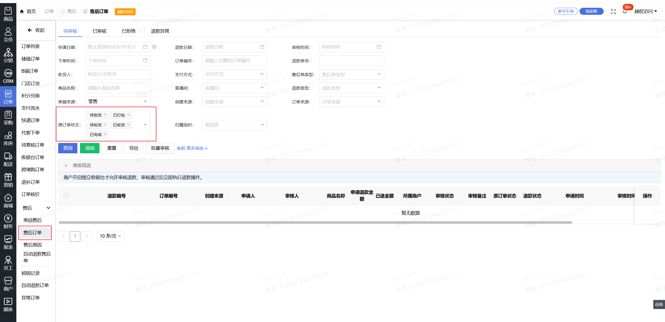 4.售后订单新增原订单状态展示字段,方便区分待收货订单退款权限