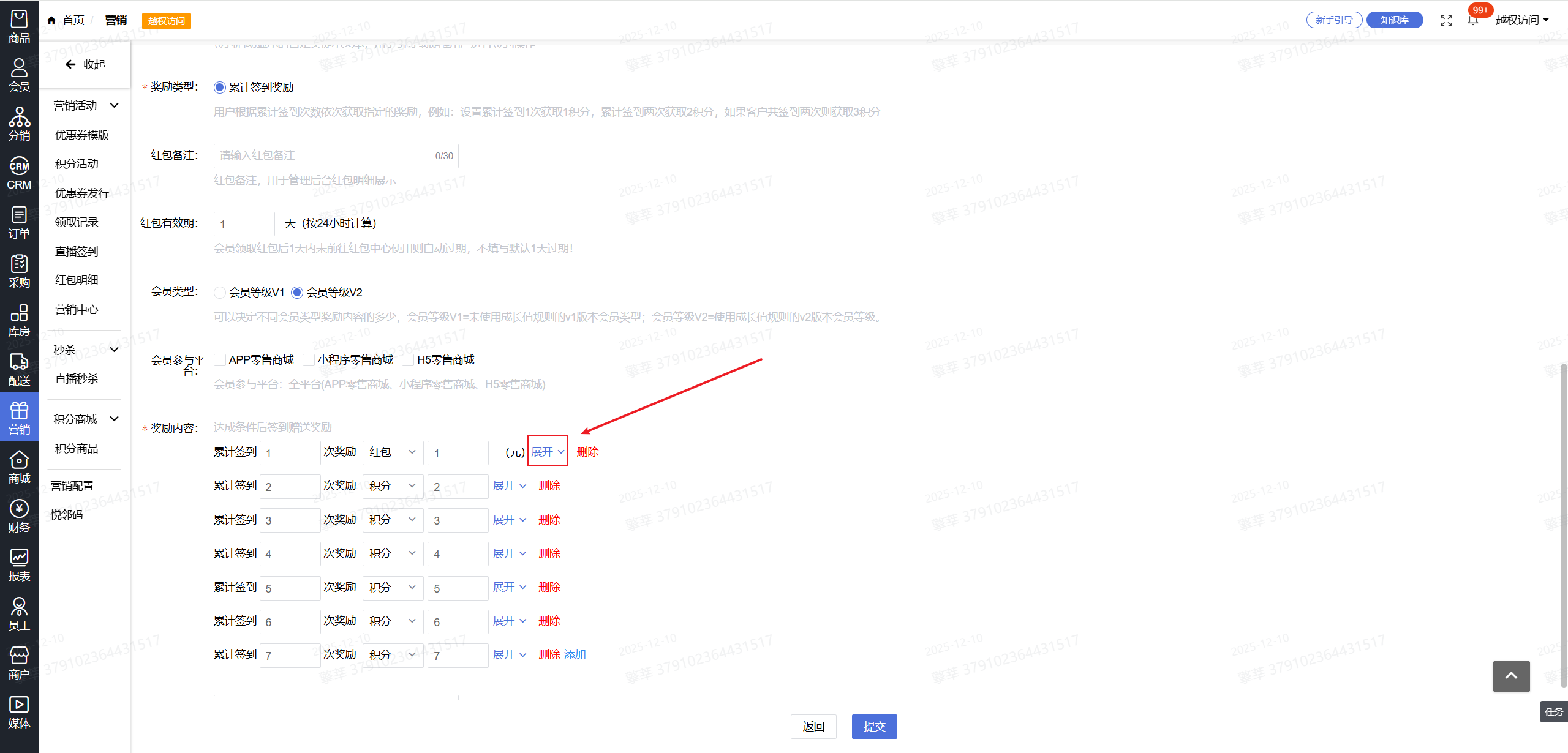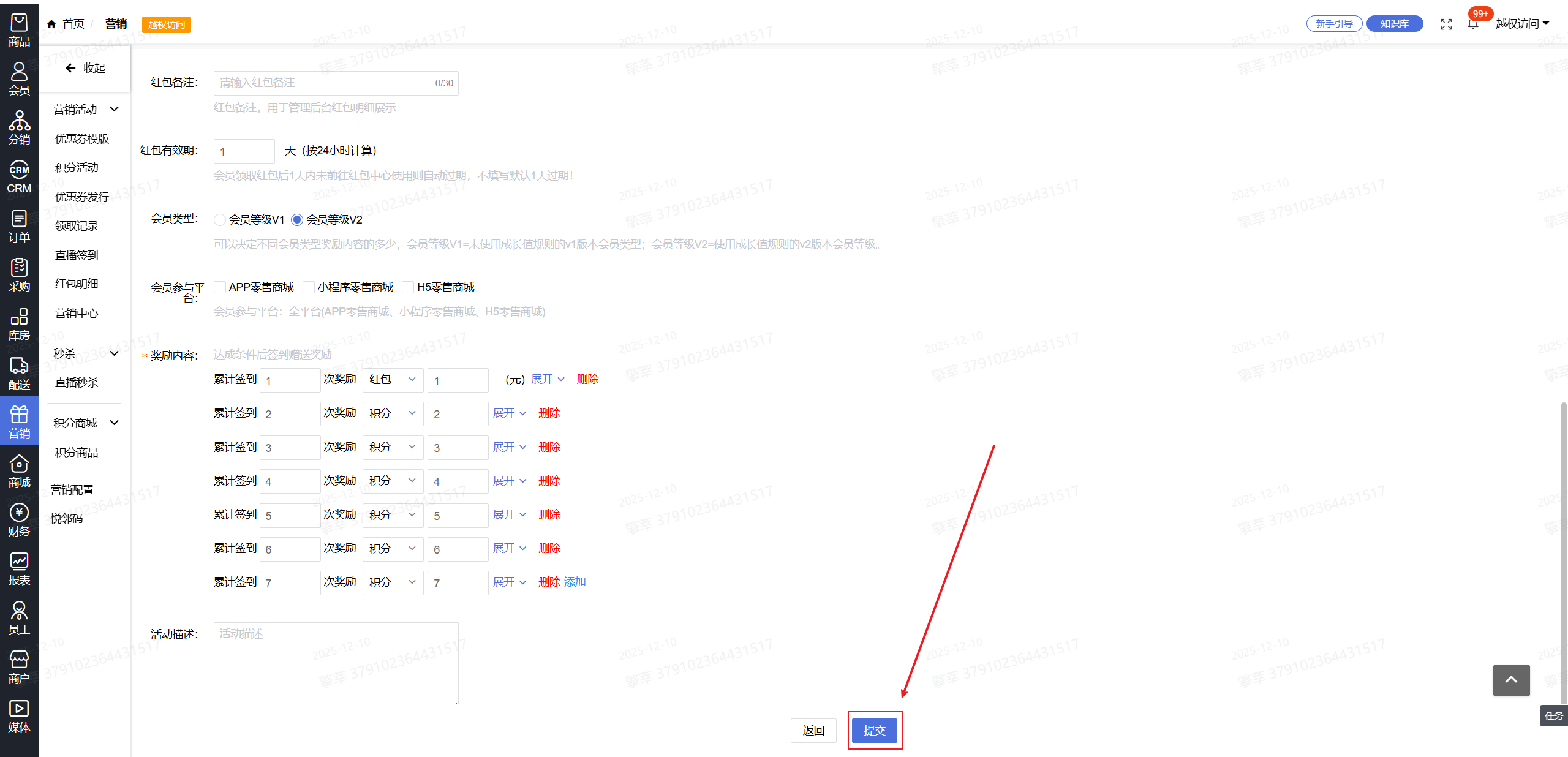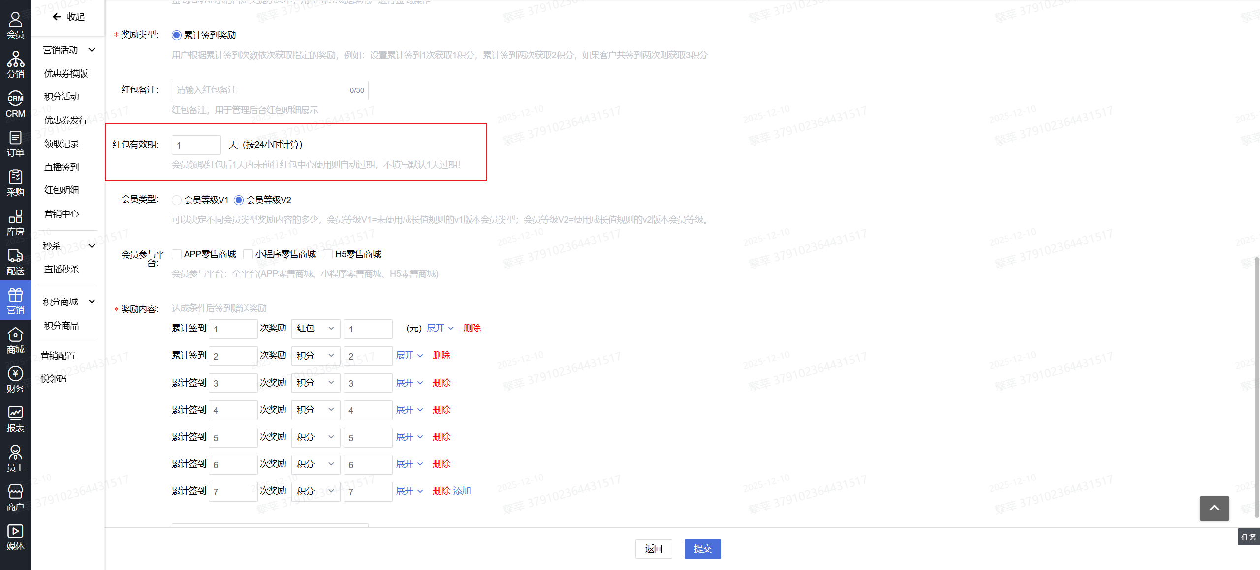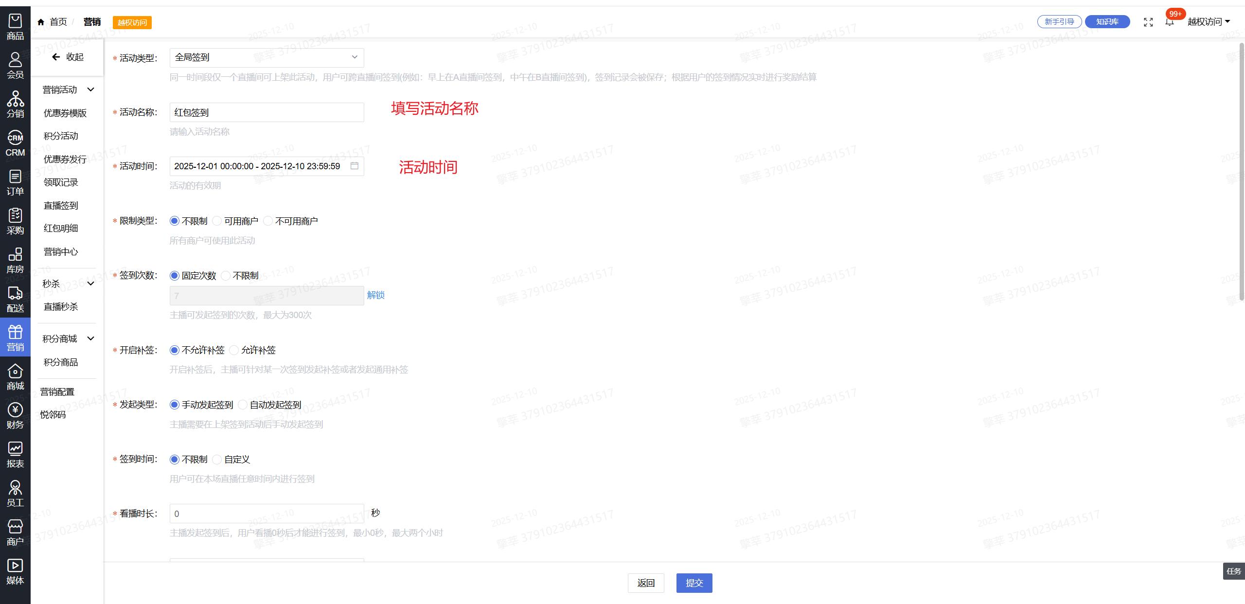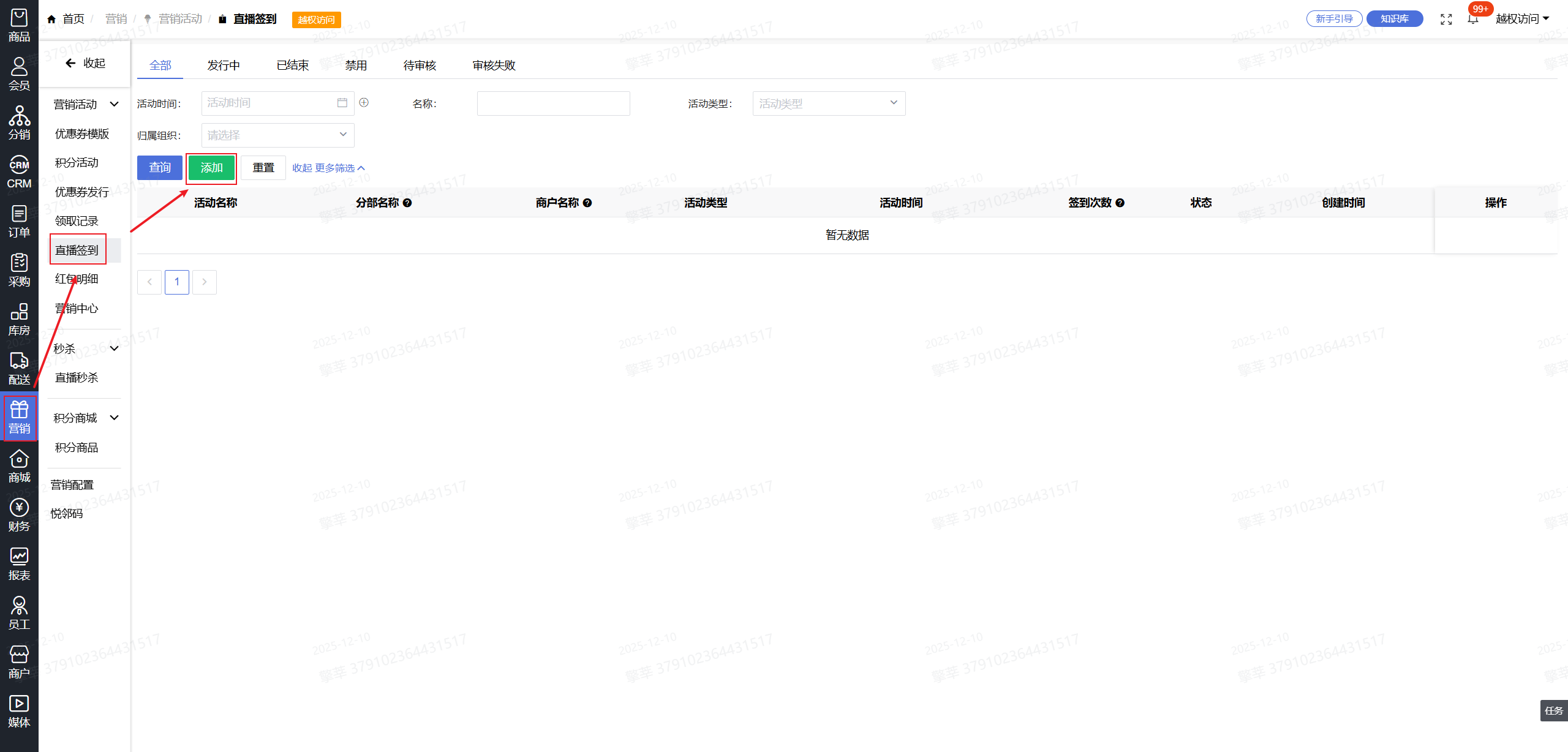1.系统后台-【营销】-【直播签到】-【添加】