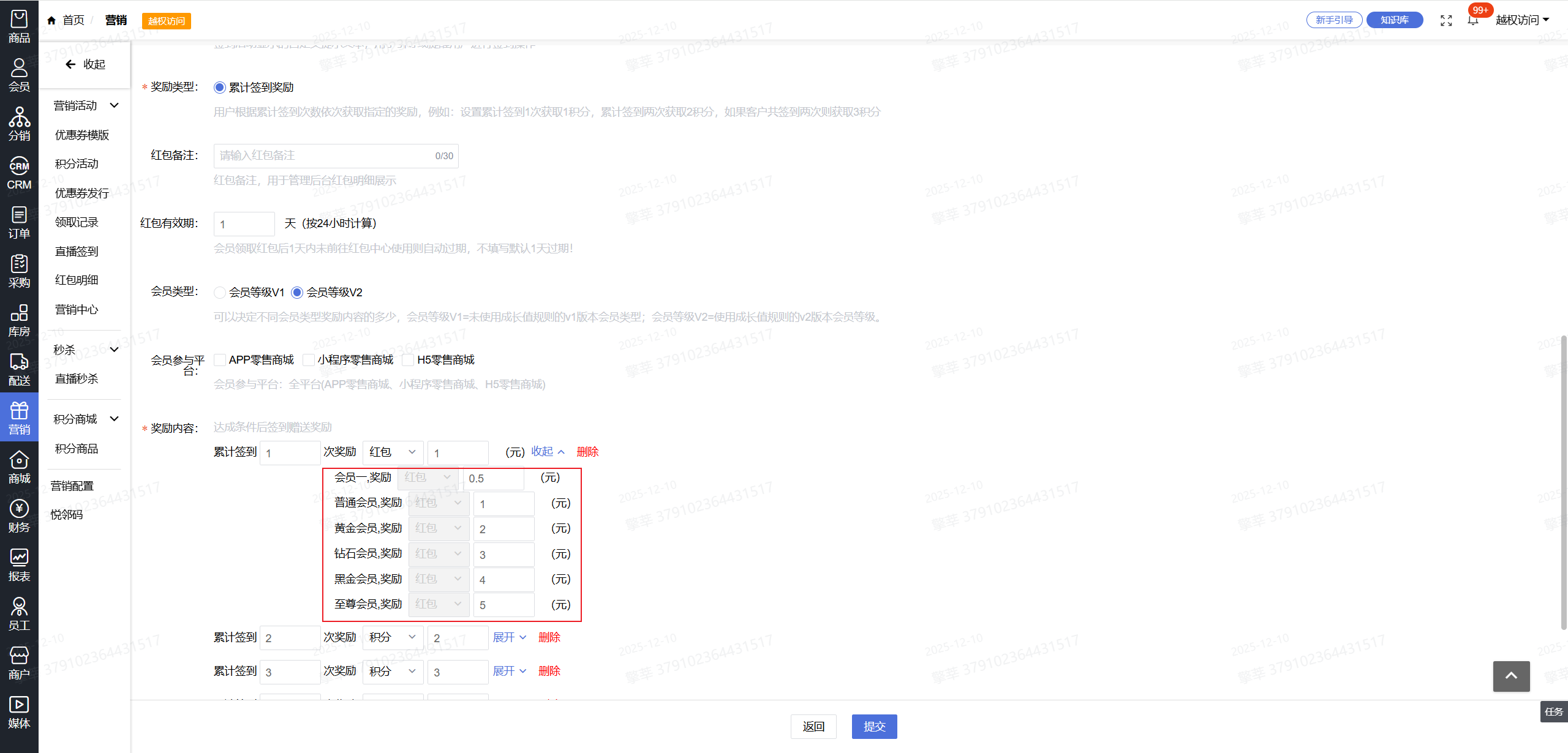 4.可以根据不同的会员等级设置不同的领取金额