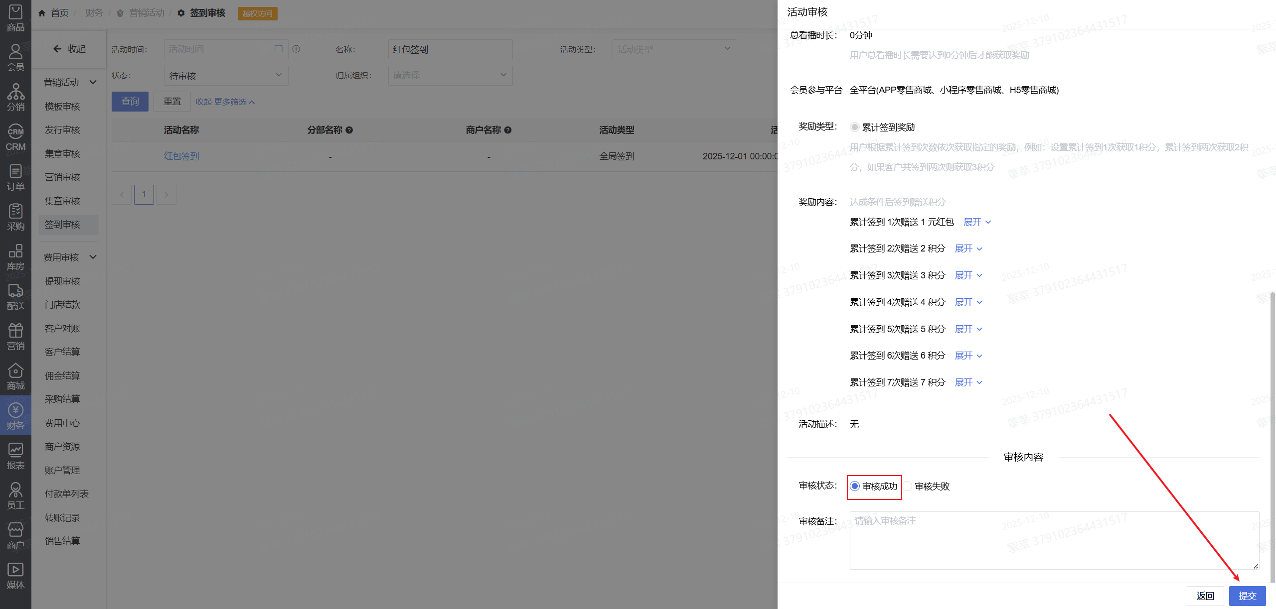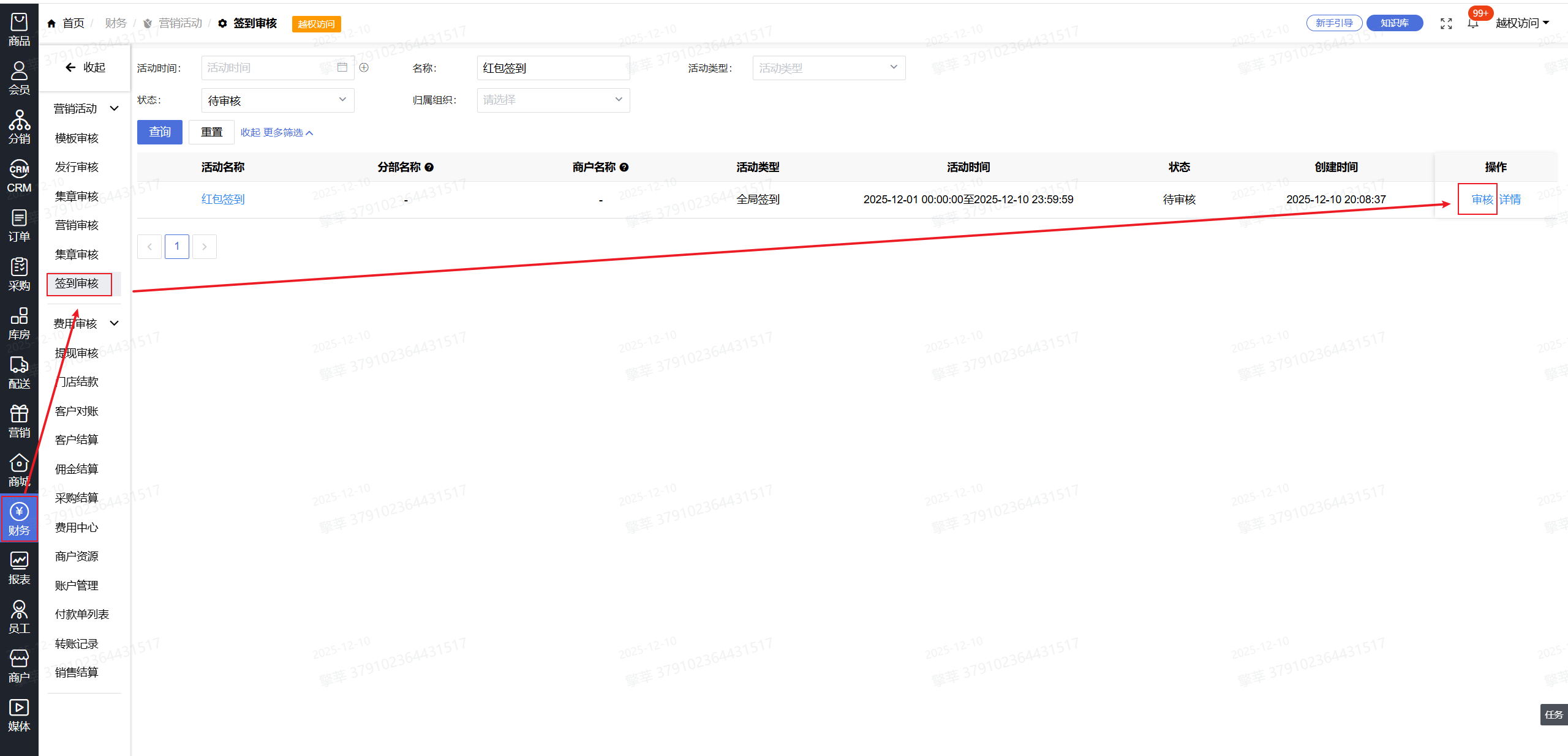 7.点击【财务】-【签到审核】-【审核】