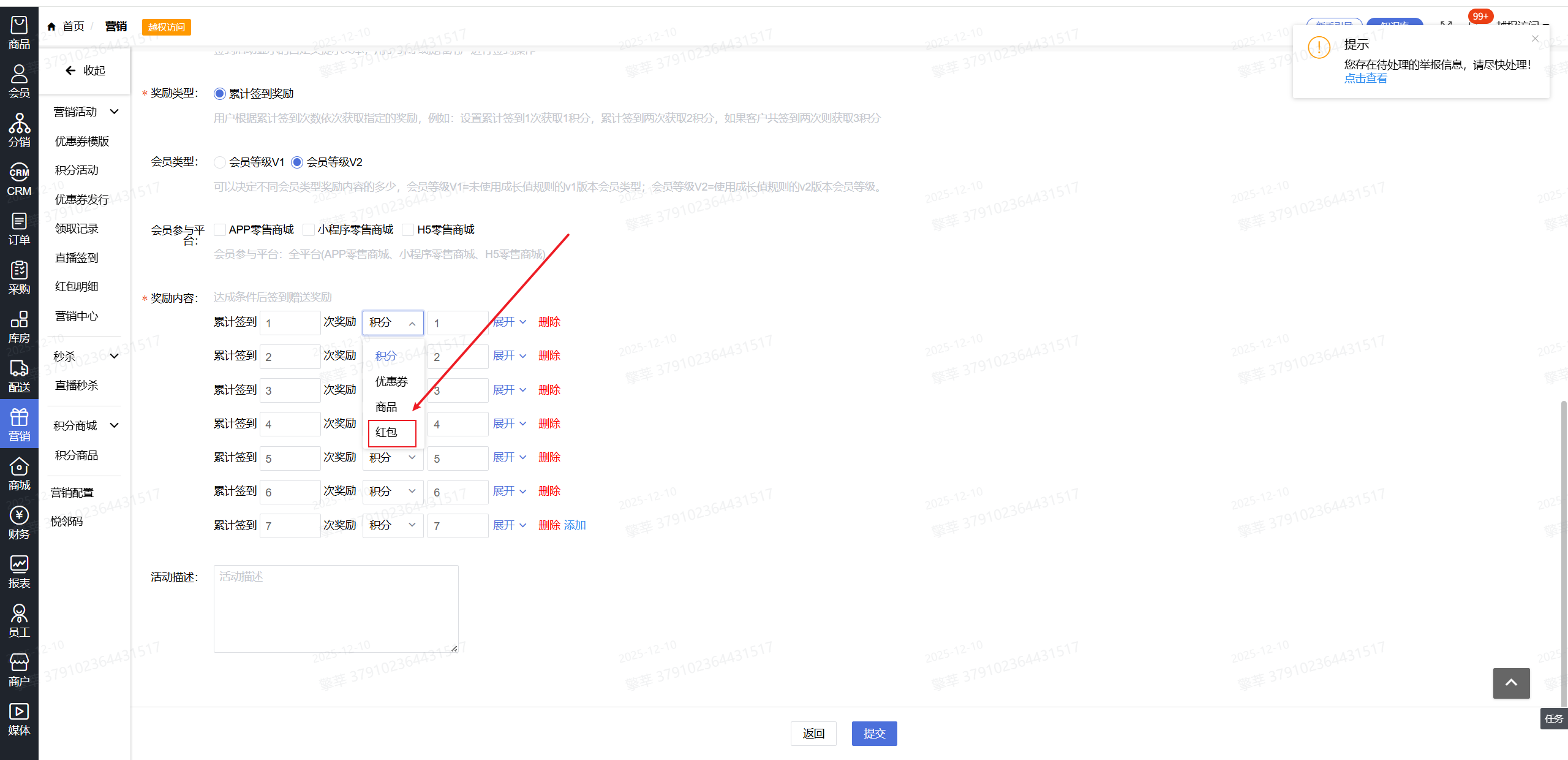 3.奖励内容选择【红包】