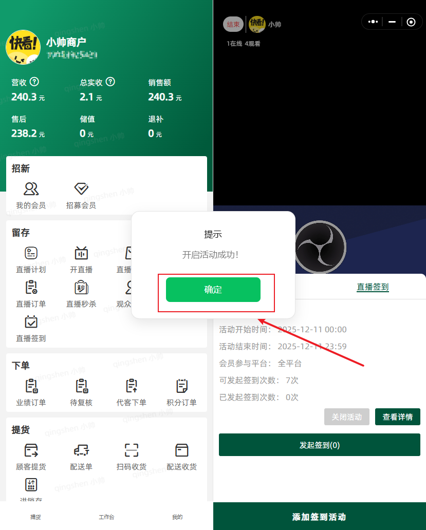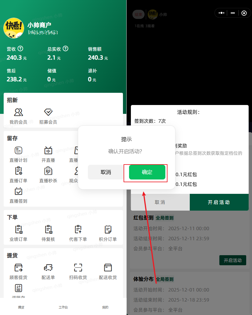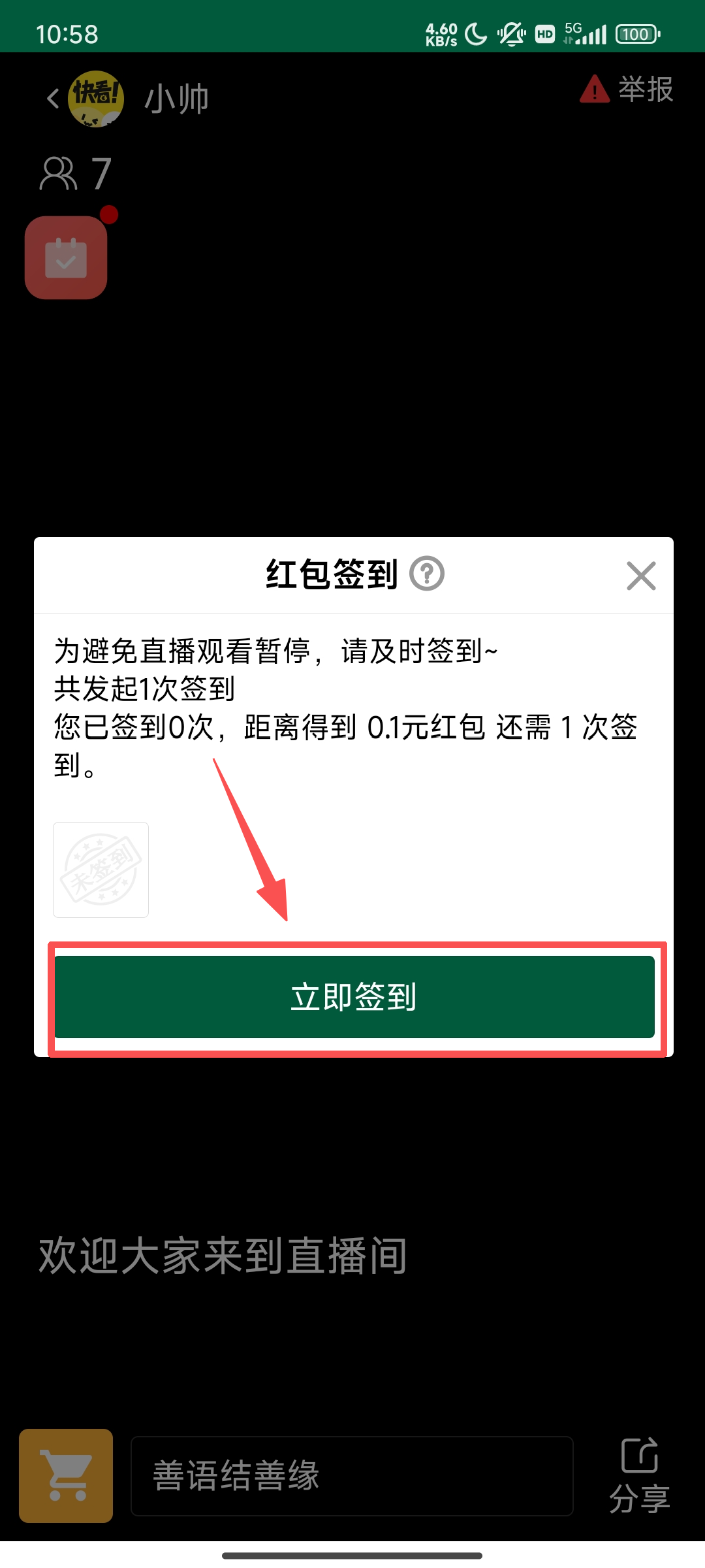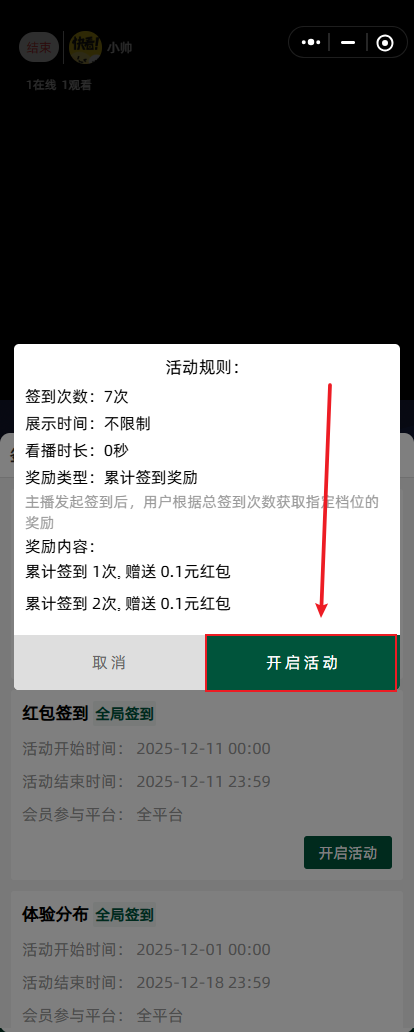 8.开直播,发起红包签到活动