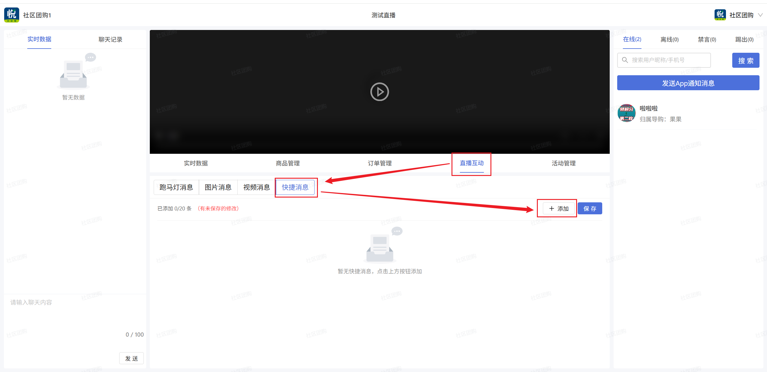 3.新增中控台自定义快捷弹幕功能,满足老年顾客快捷发送需求