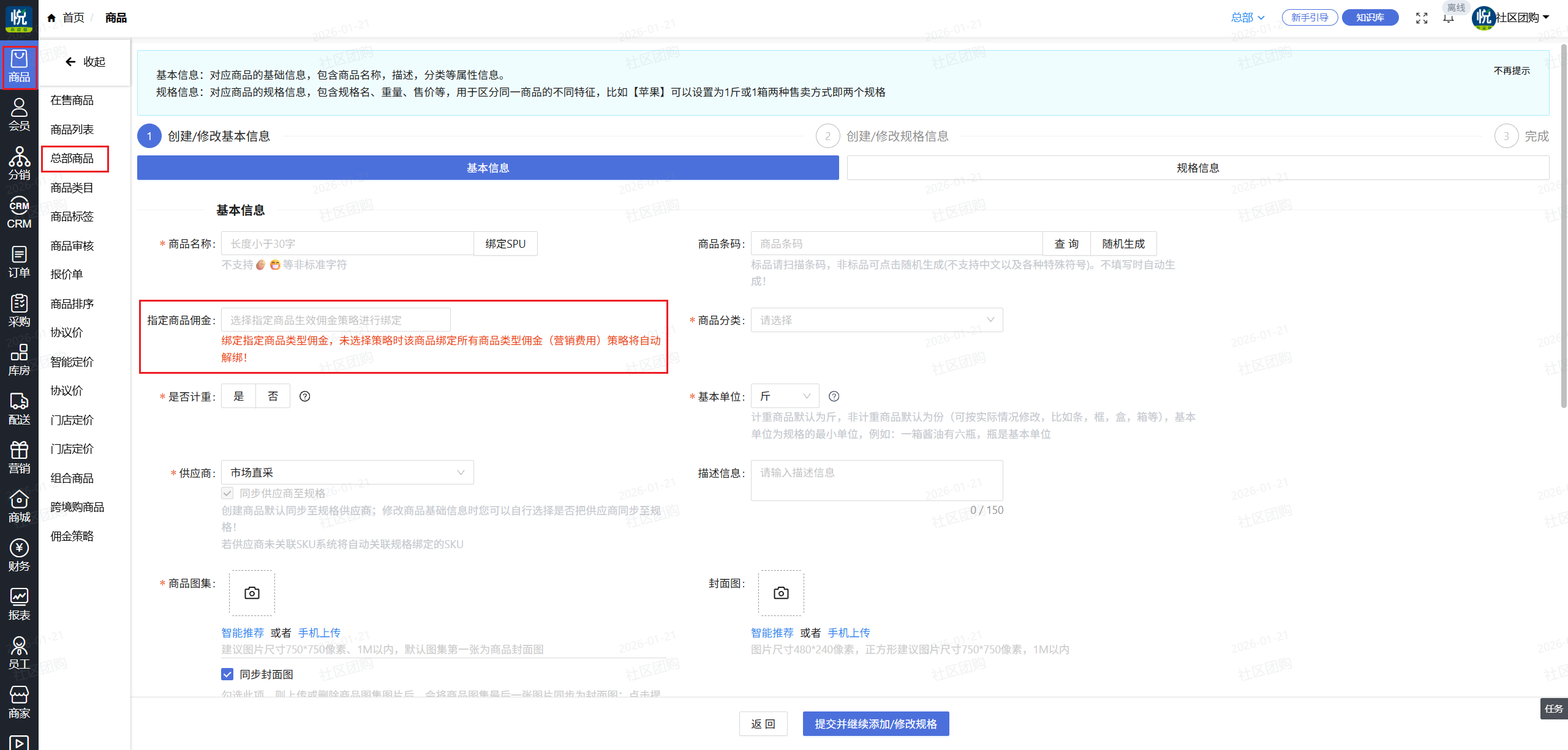6.新增门店/商品时可以添加佣金策略