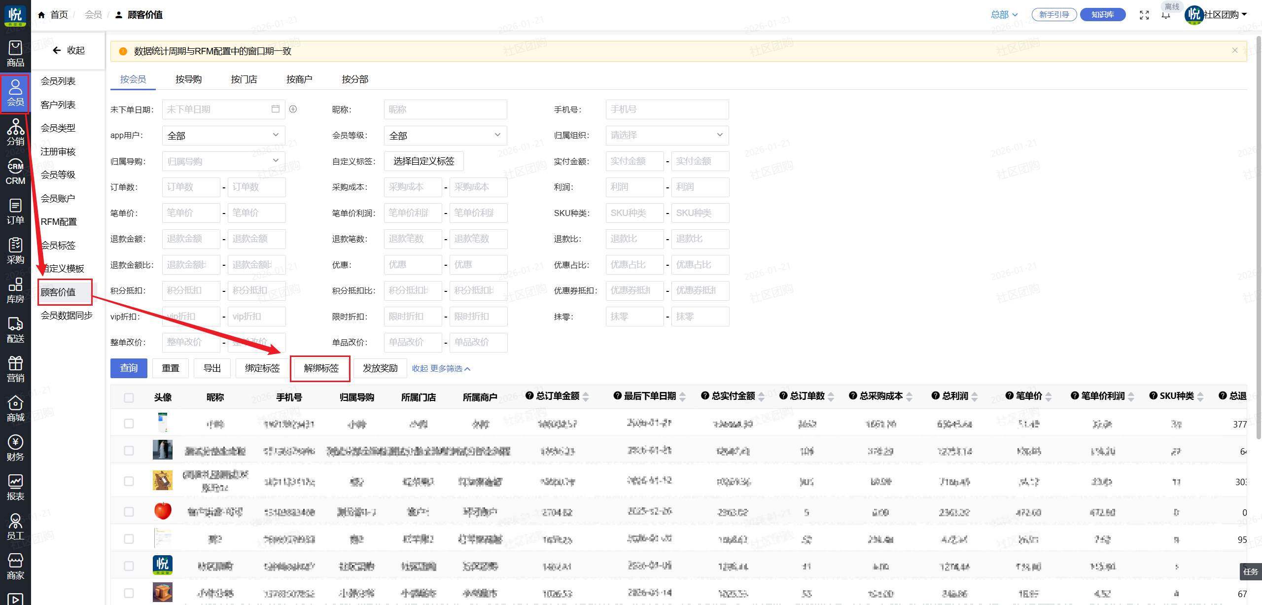 7.顾客价值无法批量解绑标签的问题,新增批量解绑标签功能按钮