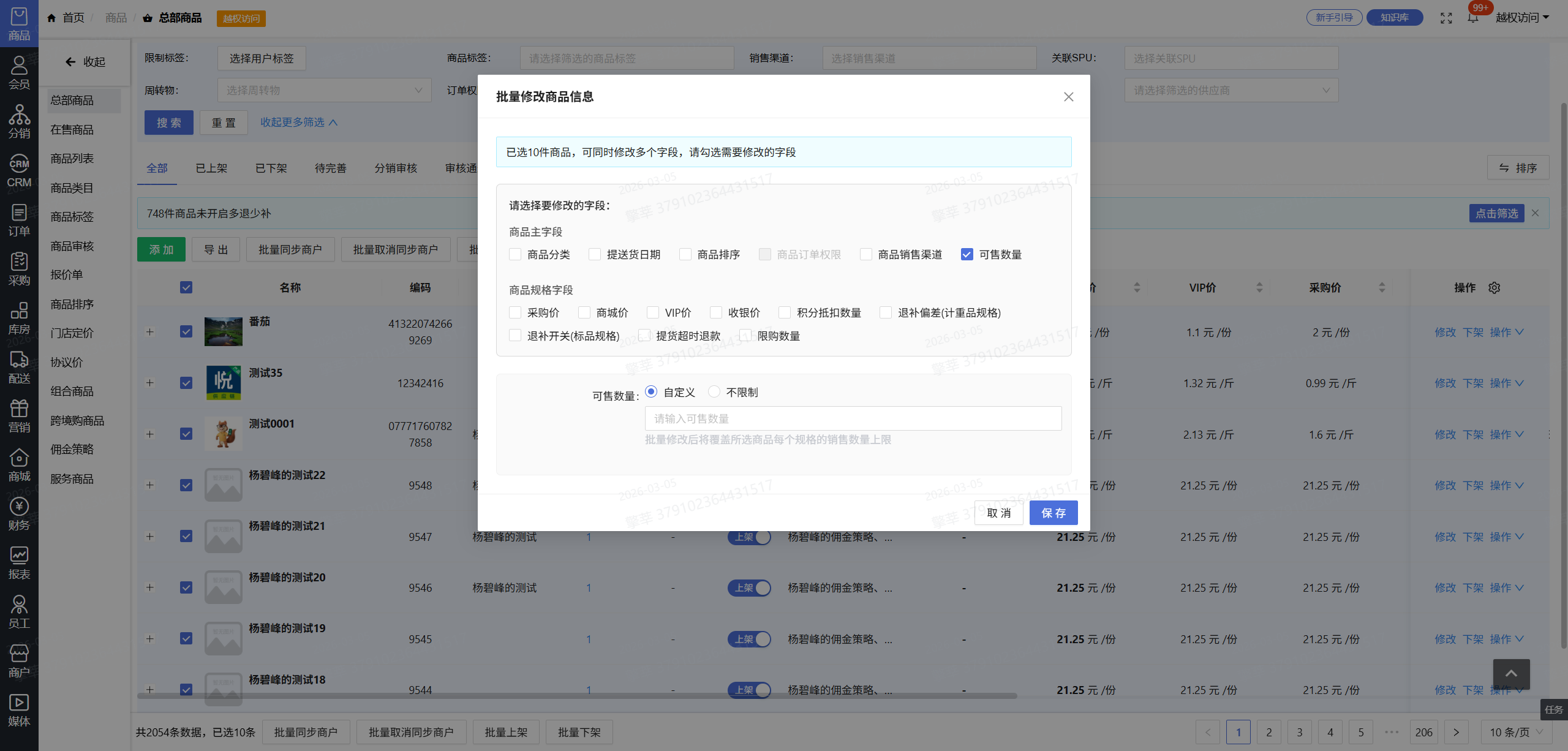 21.商品支持批量一键设置不限制可售数量