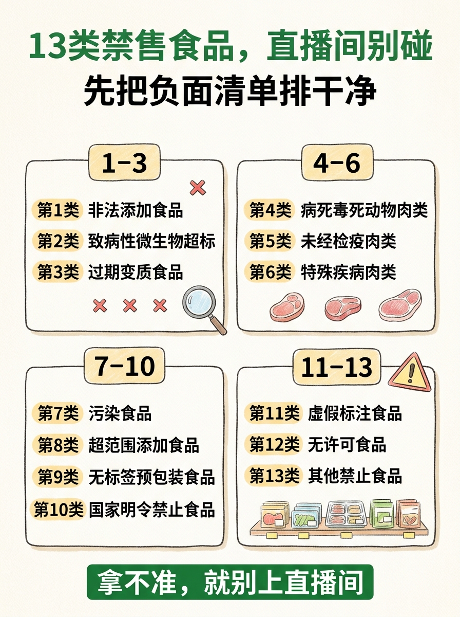 1️⃣先把禁售食品负面清单过一遍,