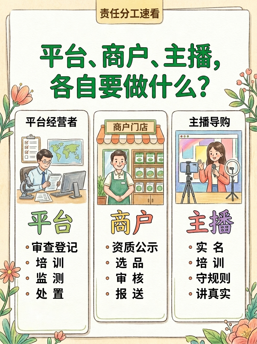 4️⃣分清责任边界:平台、商户、主播,