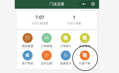 打开商服助手,找到门店,点击【代客下单】会出现客户店铺名称、收货人名称以及电话、店铺logo等,支持搜索框进行搜索。找到客户点击,选择商品加购结算。