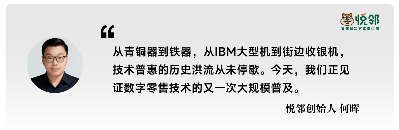 悦邻模式的探索只是这场宏大变革的开端。正如历史上每一次技术普惠都带来了社会生产力的飞跃,零售技术的普惠化也将重塑行业生态。