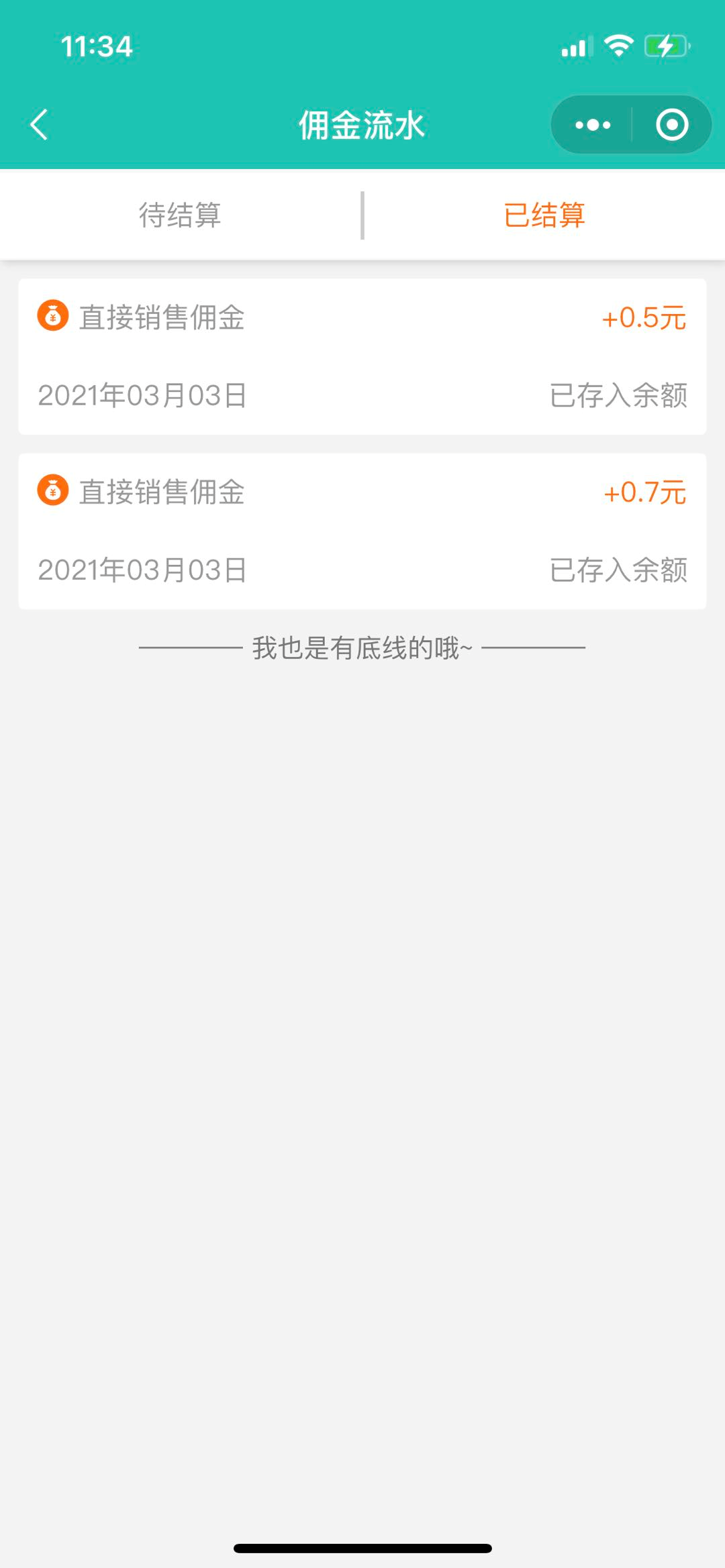 点击佣金流水可以看到待结算和已结算的佣金金额