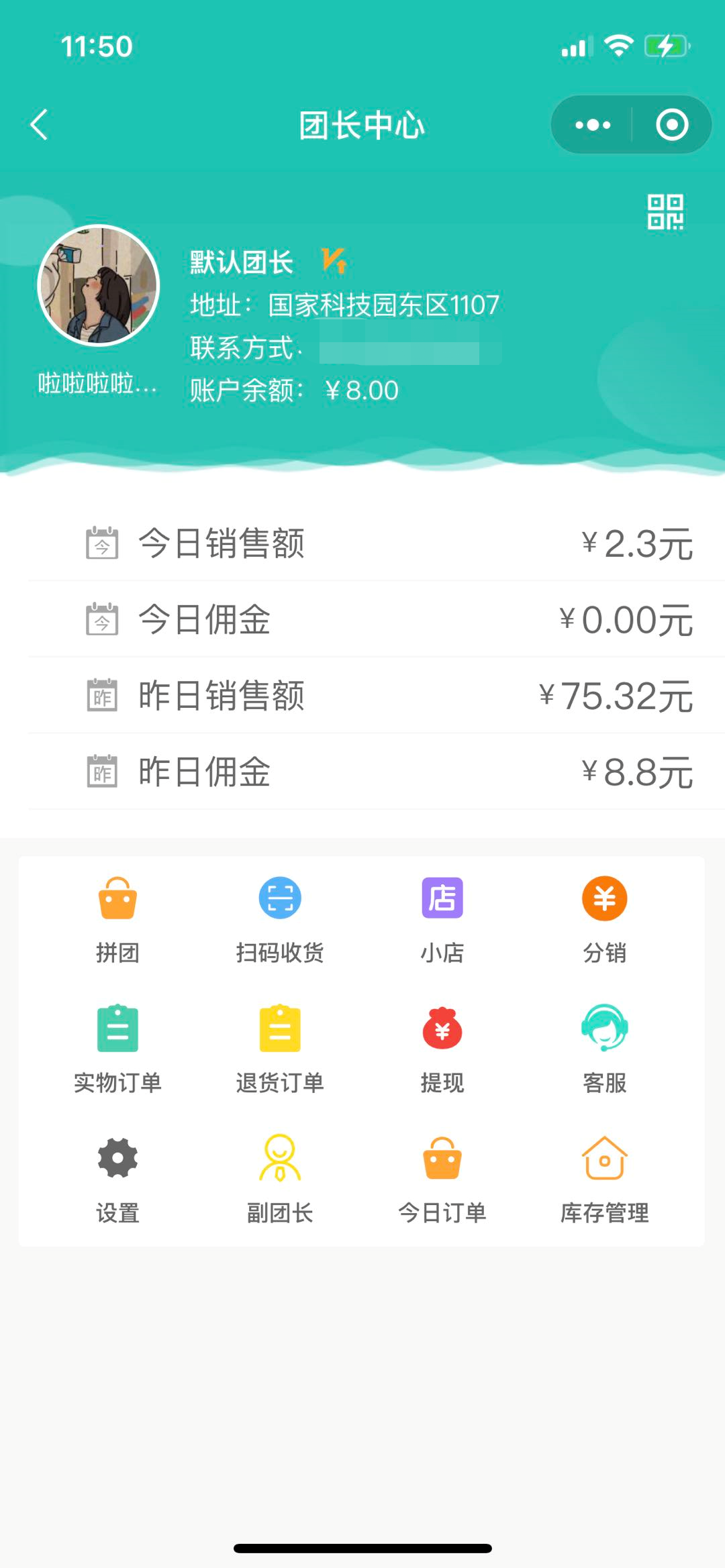 悦邻供应链专门推出了团长的佣金明细功能,在团长自己管理的 小程序端,点击团长中心可以看到今日销售额和今日佣金